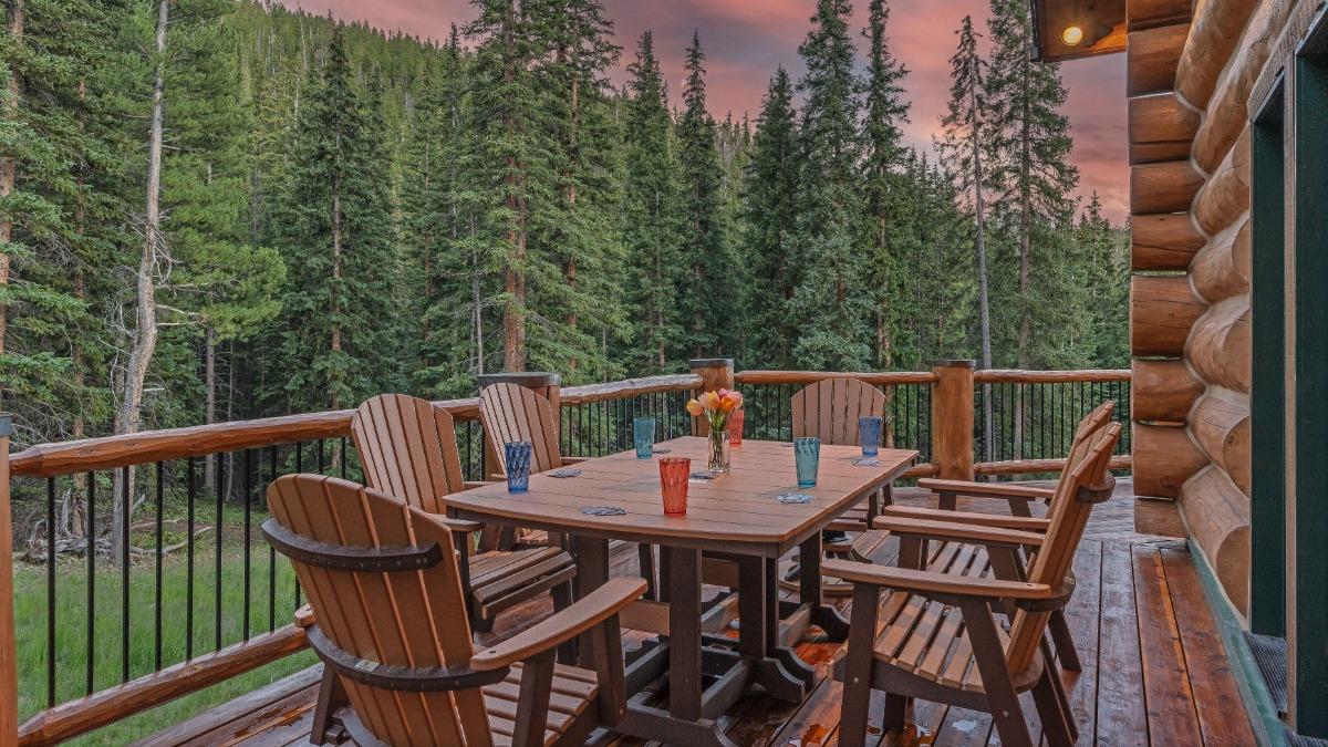 Imagine sitting on a spacious deck, surrounded by towering pines and breathtaking mountain views. The Colorado Rockies provide a stunning backdrop that enhances every meal, from a casual breakfast to an elegant dinner.