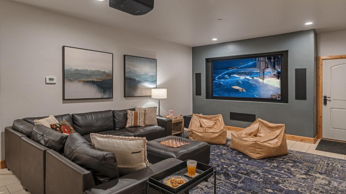 Moving Mountains luxury vacation rental homes provide the ultimate private venue for every "must-watch" moment. After a day on the slopes, come home to your own private theater with plush seating, surround sound, and supersized screens; no tickets required.