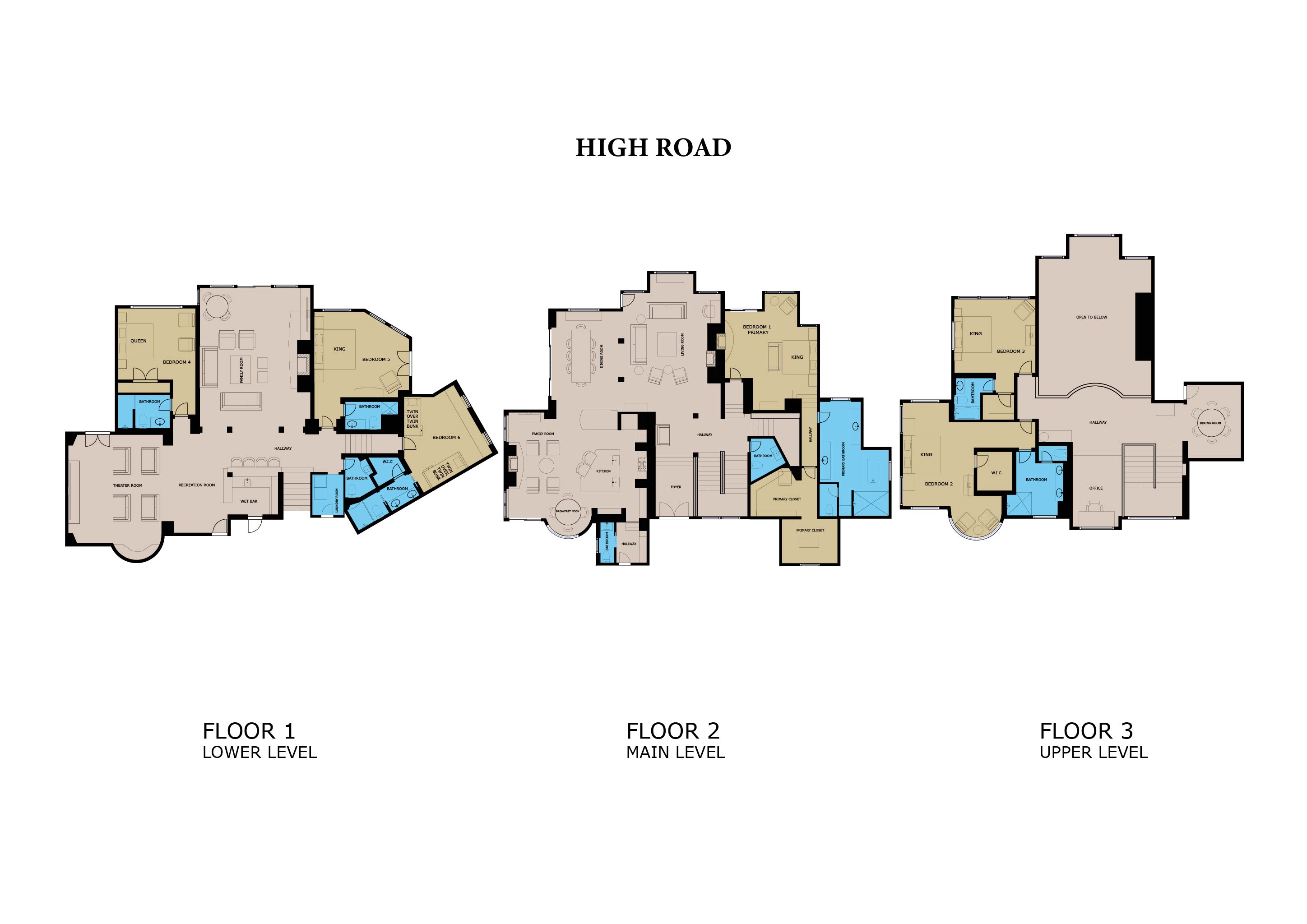 High Road’s additional luxuries include a 3-car garage with a heated driveway, a Sonos home sound system, blackout shades in all the bedrooms, main-level air conditioning, a whole-home humidifying system, and a full laundry room.