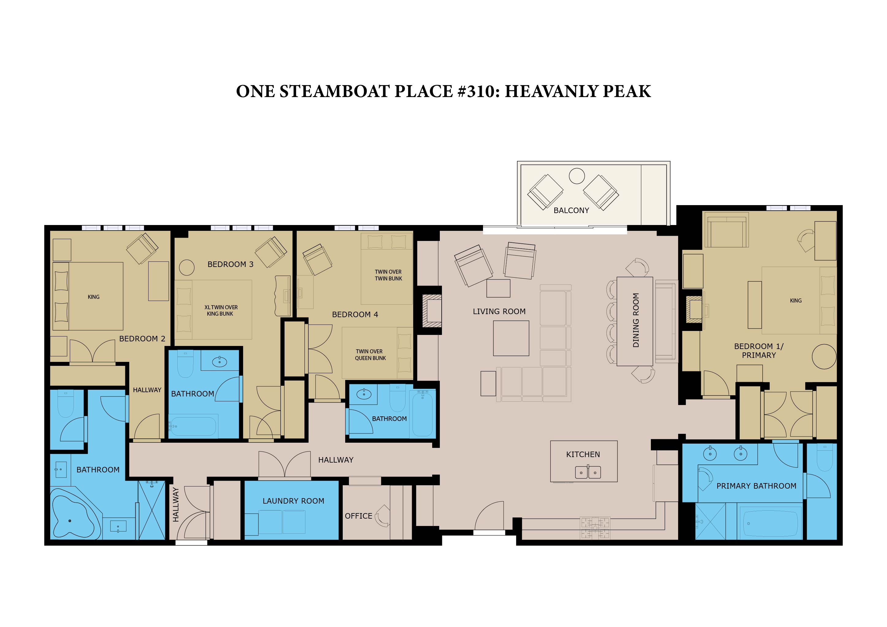 The Heavenly Peak residence at One Steamboat Place has a prime slopeside location where, from the living room or deck, you can watch skiers and snowboarders come down the mountain. This exceptional 4-bedroom home offers the location, luxury and first-class amenities that make for a truly unforgettable vacation.