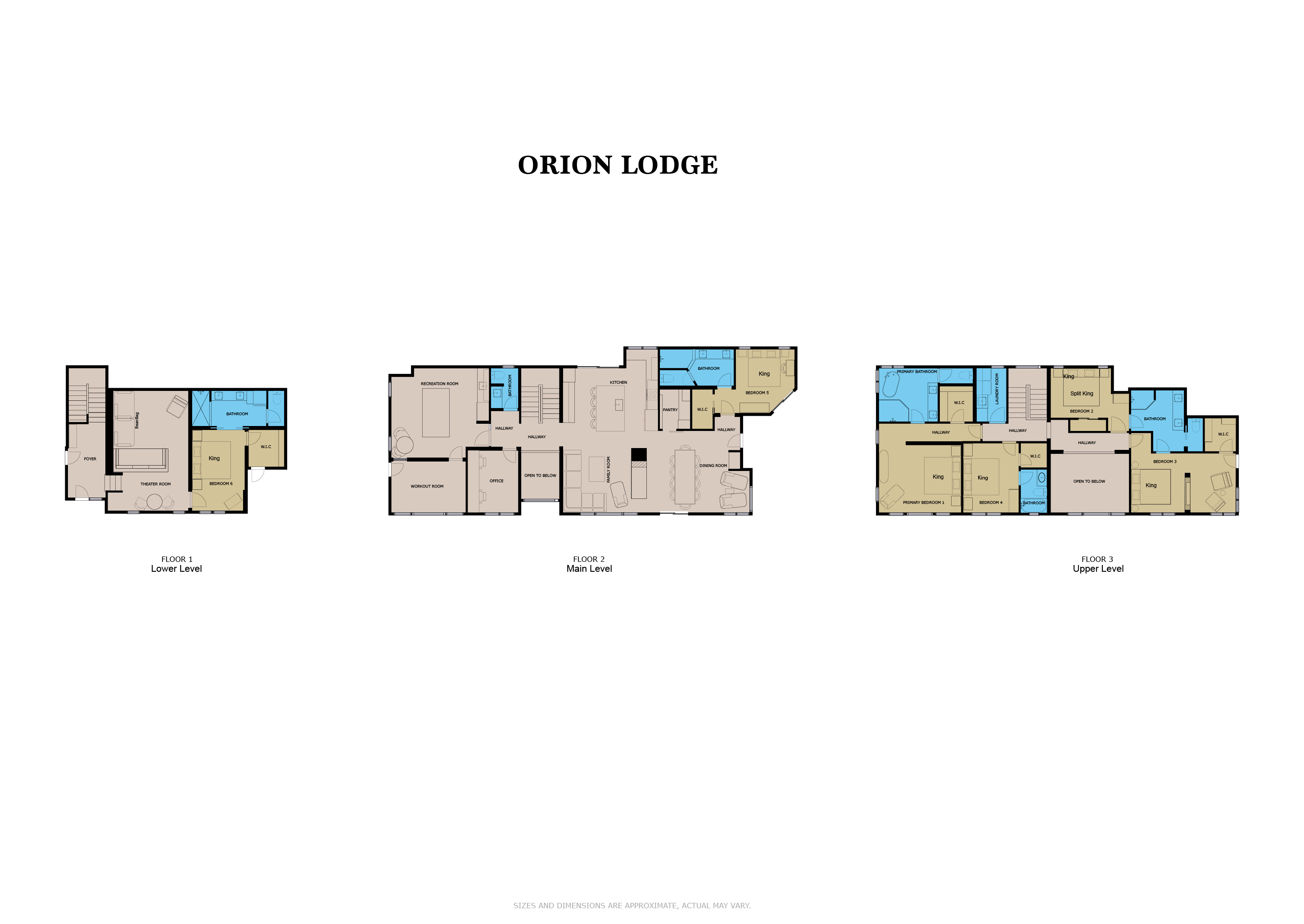 A state-of-the-art theater room is a highlight of the lower level of Orion Lodge. There is also a king bedroom with ensuite bath.