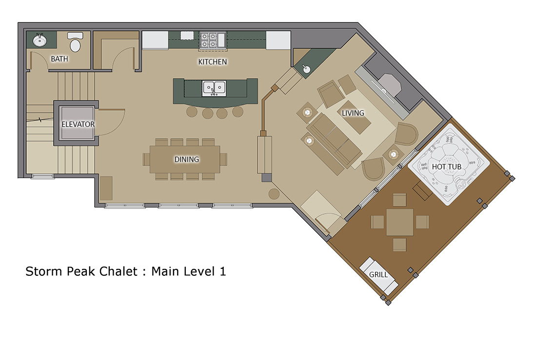 A cozy great room allows you to relax by the gas fireplace and enjoy a spectacular view of the Steamboat ski mountain. A spacious and open floor plan connects the kitchen, dining, and living area, making an ideal entertaining space. For added convenience, an elevator serves all floors.